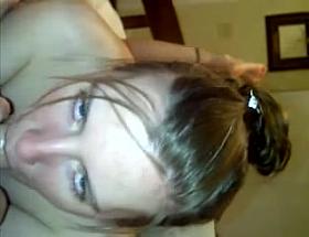 Stunning babe facialized after oral in cfnm