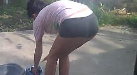 Horny Blonde Transparent Leggings Shows Her Hot Ass!!