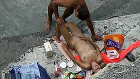Casual tempting oriental slag getting really surprised by some sharking guy