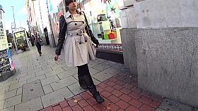 Public nudity scene with naked sexy nudist brunette