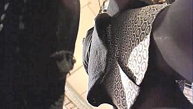 Thong upskirt shot of a slim chick in the bus