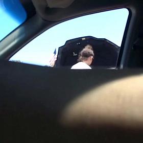 Flexible teen hitchhiker bangs big dick in car