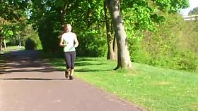 Milf exercising in the thread mill with her hard nipples poking through the bra and top.