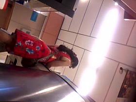 Blonde with flabby ass wears a g-string in upskirt clip