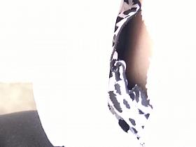 Asian babe gets a cold skirt sharking on a snowy day.