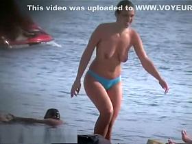 Nice boobs topless chick in the beach