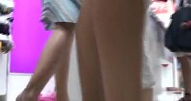 Upskirt video of a sexy chubby girl in a pink shirt