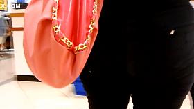 Upskirt porno video of a white woman wearing no underwear & showing pus