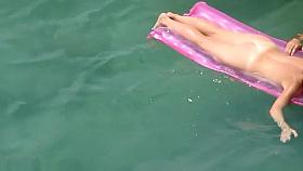 Tanned blonde got a tiny white thong