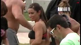 Charming brown-haired fiery slut is on her way to school while wearing really sexy outfit, but then some fast guy runs behind her, lift her mini skirt and totally reveals her pink underwear before making a quick escape in the other direction.