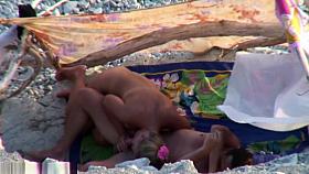 Naked brunette woman nude beach candid video