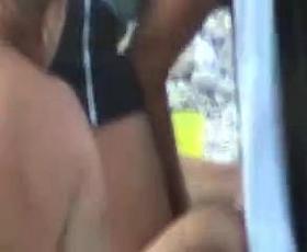 Sweet bimbo sunbathes with her shaved pussy lips out in the open