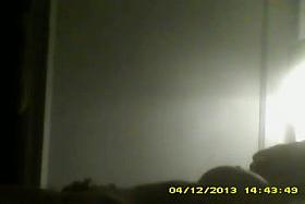 Curvy ebony babe is being filmed by a voyeur cam