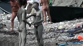 A super hot babe is talking on the street phone as a voyeur gets his chance for upskirt videos
