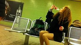 Sexy amateur pissing on toilet wears fishnet and short skirt