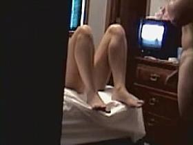 Spy cam girl invitingly opens her legs for lovers hard cock
