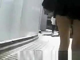 Cute girl looked very happy on this warm day and that's probably why she wore such a colorful skirt with some glowing symbols on them. Voyeur followed her all the way until he saw her tanned ass from an upskirt perspective. You'll love that tight butt.