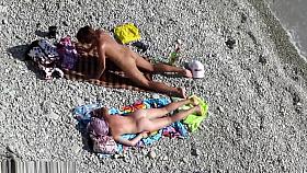 Woman fingered by her man in the beach