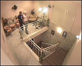 Nudist woman blows her man's cock and he fingers her cunt. She plays with his cock and he gropes her tits.