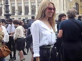 Golden-Haired honey flashed upskirt arse