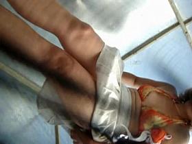 Gal in beach cabin bares off nub and puts bikini on up skirt