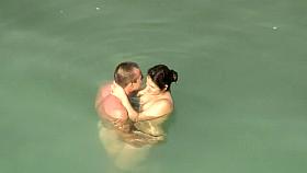 Three hot people having sex in the water