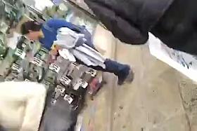 Nice ass chick in black leggings walking on the side walk with her boyfriend.