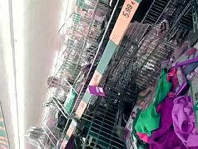Mini skirt clad brunette caught on a hidden voyeur cam