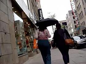 Sexy brunette PAWG in black jeans, I get right up that ASS.