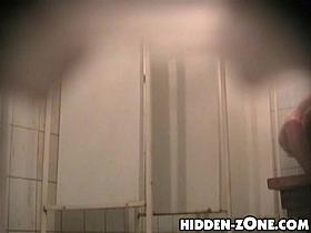 Shower cam tits bounce as girl leans to wash legs