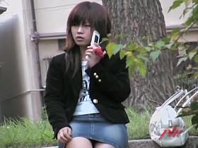 Sexy legs up the jeans skirt voyeured on the bridge AA1A