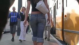 Slutty asian college girls with great tits and tight jeans filmed by a candid spy cam voyeur as they are showing off their perfect asses on a public street