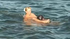 Voyeur. Guy wanking and fuck redhead girl on a public beach